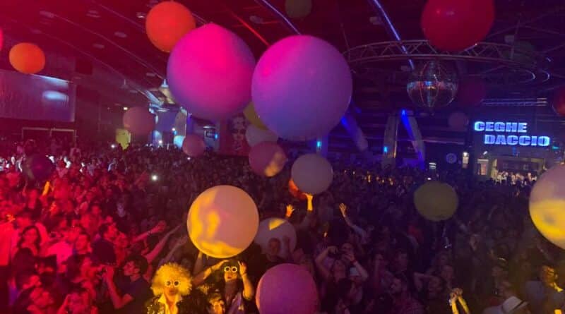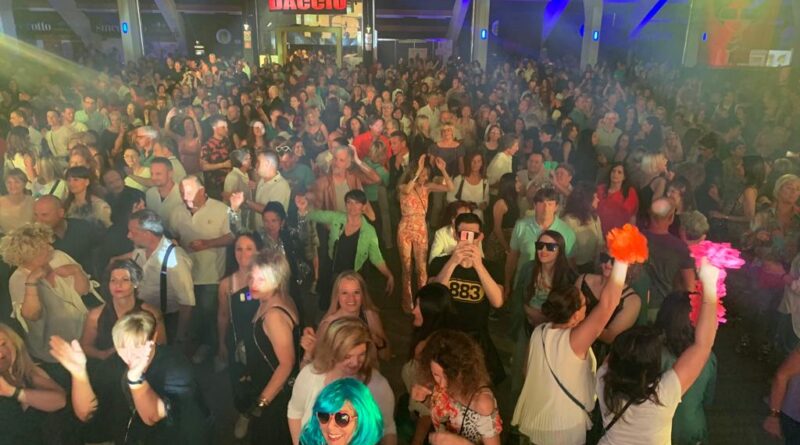 E così è stato anche ieri sera, quando tra parrucche, pantaloni a zampa di elefante, zeppe e camicie dai colletti enormi e sgargianti, di appassionati se ne sono visti tantissimi. Dietro alla consolle, con una produzione scenografica da grande concerto, c’erano Carlo e Renato Pontoni. A loro il compito di far suonare i dischi, rigorosamente in vinile, facendo ballare il pubblico sulle note dei più grandi successi di sempre. Rigorosissimi, come da tradizione, gli orari d’inizio e fine serata che rappresenta semplicemente non solo un’occasione per ballare, ma anche per un sano divertimento in compagnia in assoluta sicurezza, a maggior ragione dopo un’attesa così lunga. Iniziata alle 20 con il buffet e musica live, la festa è proseguita fino all’1.30 di notte. Il tutto condito come sempre da strabilianti effetti “sparati” sulla folla. Dalla pioggia di coriandoli alle decine di mega palloni colorati passati di mano in mano lanciandoli da ogni parte del dance floor.