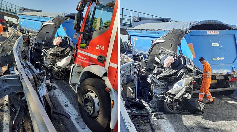 Il sinistro è avvenuto poco dopo le 7 e ha coinvolto un mezzo pesante e una vettura; il conducente di quest’ultima ha riportato è in condizioni molto gravi. Sul posto il 118, i vigili del fuoco, la polizia stradale, il personale di Autovie Venete e i mezzi dei soccorsi meccanici.