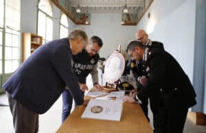 I carabinieri del Nucleo Tutela del Patrimonio Culturale di Firenze e Udine hanno consegnato 21 documenti provenienti dalle corrispondenze dell’onorevole Altiero Spinelli con le Istituzioni del tempo, all’Historical Archives of the European Union di Villa Salviati a Firenze nel corso di una cerimonia che si è tenuta il 7 maggio alla presenza del direttore e dei comandanti dei Nuclei carabinieri per la Tutela del patrimonio culturale di Firenze e Udine.