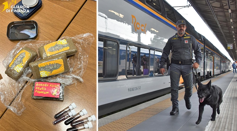 Durante il servizio veniva individuata una persona che, dall’atteggiamento, tradiva nervosismo ed insofferenza, tanto da indurre la pattuglia ad avviare più approfonditi riscontri con l’ausilio del cane antidroga Kurma, che da subito segnalava al conduttore cinofilo la presenza di sostanze stupefacenti.