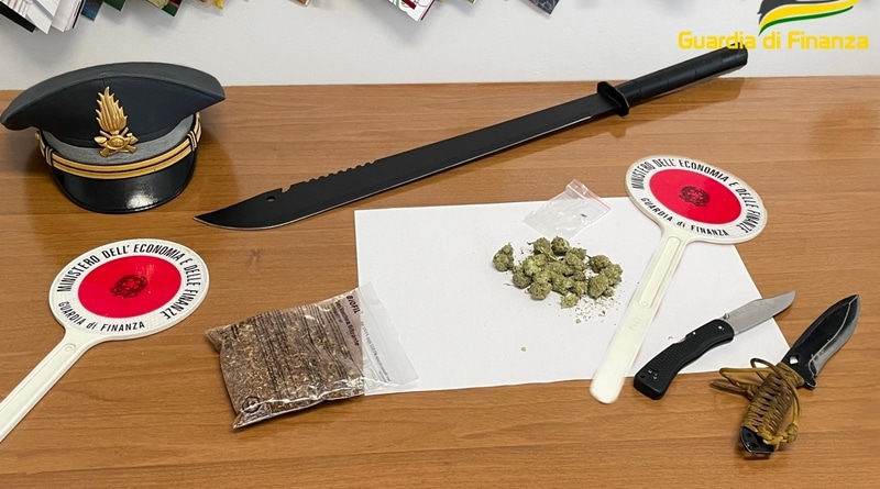 Nel corso del controllo del mezzo, i finanzieri hanno dapprima rinvenuto la sostanza stupefacente e poi alcune armi, quali un pugnale da lancio, un coltello ed un machete. L’uomo alla guida non era in grado di giustificare il trasporto delle armi, secondo le disposizioni che regolano la loro tenuta e introduzione nel territorio italiano.
