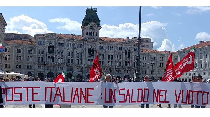 “No alla privatizzazione e alla svendita di Poste Italiane”: è il grido lanciato anche in Friuli Venezia Giulia dai sindacati delle telecomunicazioni Slc-Cgil, Cisl-Slp, UilPoste e Failp-Cisal, scesi in piazza stamattina a Trieste per protestare contro l’ipotesi di ulteriori cessioni delle quote del gruppo, controllata dal Mef e da Cassa depositi e prestiti.