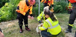 Immediatamente è stata inviata sul posto una squadra che ha verificato che i latrati provenivano da un cane di piccola taglia che, quasi allo stremo delle forze, era caduto nel corso d’acqua e non riusciva più ad uscirne.