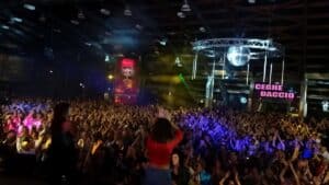 Rigorosissimi, come sempre, gli orari d’inizio e fine serata che, come ormai sanno tutti i fedelissimi, non rappresenta semplicemente un’occasione per ballare, ma anche per un sano divertimento in compagnia e, soprattutto, in assoluta sicurezza. Iniziata alle 20 con il buffet e musica live, la festa è proseguita fino all’1.30 di notte. Il tutto condito come sempre da strabilianti effetti “sparati” sulla folla. Dalla pioggia di coriandoli alle fontane luminose, dai cuori sparati sulla folla fino alle decine di mega palloni colorati che migliaia di mani si sono passati lanciandoli da ogni parte del dance floor. Per non parlare degli schermi su cui venivano proiettate le immagini in diretta della festa.