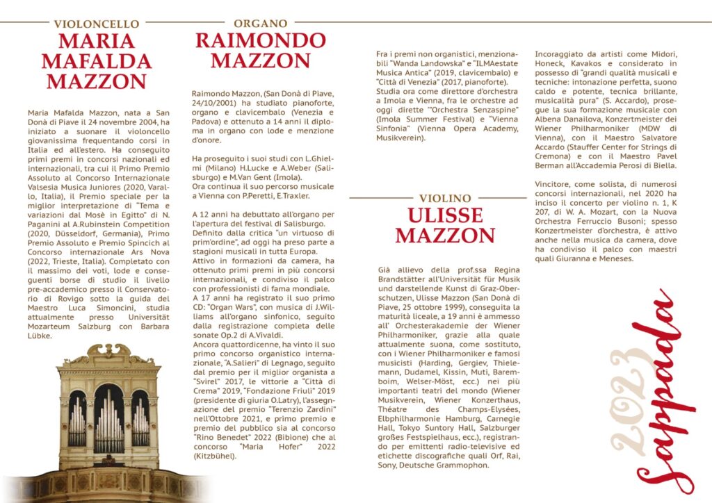 Protagonisti i fratelli Mazzon: Raimondo all’organo, Maria Mafalda al violoncello, Ulisse al violino.