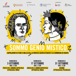 “Sommo Genio Mistico” è un progetto del Coro del Friuli Venezia Giulia, realizzato con il sostegno del Ministero della Cultura, della Regione Friuli Venezia Giulia e della Fondazione Friuli, in collaborazione con le parrocchie di Venzone, Paderno di Udine e il Comune di Valvasone.
