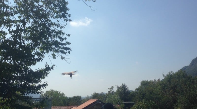 “La radiotrasmittente che avevamo applicato sulla schiena di Kronos ha cominciato a dare il segnale di mortalità il 12 corsica-kronos2settembre sulle prealpi nei pressi di Bergamo, precisamente nel giardino di un’abitazione”, spiega Fulvio Genero, responsabile scientifico del progetto “GrifoniOsservati Speciali”, sostenuto dal Parco Natura Viva di Bussolengo come zoo capofila di UIZA, l’Unione Italiana Zoo e Acquari. “Significa che l’apparecchio non registrava più nessun movimento e non era un buon segno. Ma dopo numerosi controlli, nessuna traccia né dell’animale, né della radio.” Solo alla fine di settembre, si scopre che la radiotrasmittente si era sfilata dalla schiena di Kronos ed era caduta sul tetto della casa. “Persa la radio, a Kronos rimaneva solo l’anello identificativo con la sigla F65, che speravamo qualcuno individuasse”, ricorda Genero.