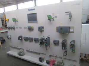 In pratica ciascun allievo della classe si connetterà con il sistema di automazione tramite il pc a disposizione e potrà programmare il software di supervisione e la logica di automazione, parametrizzare gli inverter e quindi comandare e analizzare il comportamento dei vari motori elettrici, realizzando così l’intero programma didattico della specializzazione.