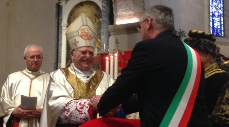 Una cerimonia quella andata in scena nella cittadina pedemontana che ha visto grande partecipazione di pubblico e cittadini, incominciata al mattino con il ritrovo sotto il loggione di Palazzo Boton e l’avvio del corteo aperto dalle delegazioni in costume storico giunte da Conegliano, Spilimbergo, Vicenza, Precenicco, Premariacco, Marano Lagunare, Strassoldo e Tricesimo. Quindi il sindaco Paolo Urbani, accompagnato dal Capitano del Popolo e dal paggetto con il Tallero d’argento, hanno fatto il loro ingresso in Duomo tra gli squilli delle trombe per poi attendere il momento più sentito, quello della consegna della moneta di Maria Teresa d’Austria, simbolo della rinnovata collaborazione tra Amministrazione comunale e Chiesa locale, rappresentata oltre che da Brollo anche dall’Arciprete Monsignor Valentino Costante.