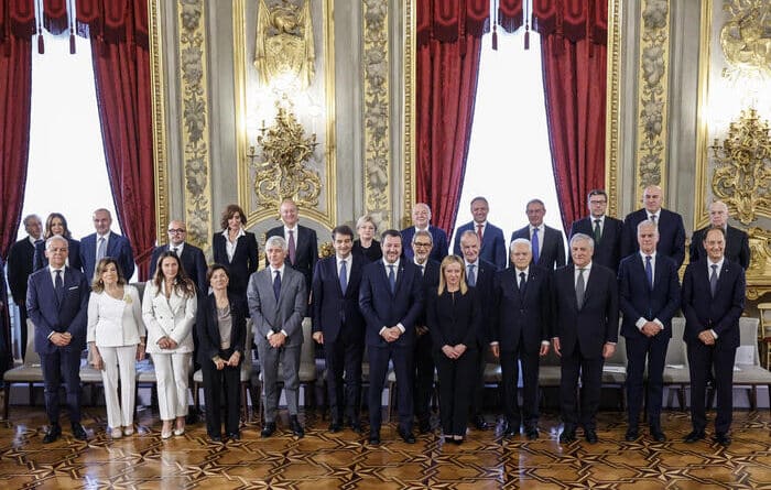 Nasce il governo di centrodestra. Giorgia Meloni e i 24 ministri hanno giurato sabato mattina nelle mani del presidente della Repubblica, Sergio Mattarella. Dopo il giuramento al Quirinale la premier Meloni e tutti i ministri si sono messi in posa per la foto di rito con il Capo dello Stato.