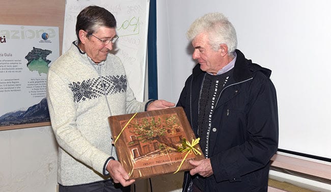 Un premio assegnato a una piccola comunità che conserva e protegge gelosamente un albero secolare nel “cortile” di casa. Il Premio Paesaggio 2018, promosso dall’Ecomuseo delle Acque del Gemonese e giunto alla sua decima edizione, è stato vinto da Borgo Saletti, un piccolo insediamento rurale tra Buja e Osoppo, e il gelso centenario che ancora oggi fa bella mostra in una delle due corti comunicanti che caratterizzano l’impianto del borgo. Gli anni che porta dentro l’hanno letteralmente piegato, eppure il gelso resiste indomito al trascorrere del tempo anche grazie alle cure che gli abitanti gli riservano. Il premio, un’opera della ceramista Marisa Plos, è stato consegnato nelle mani di Lido Sangoi, “dirimpettaio” dell’albero, in occasione della cerimonia di consegna degli attestati ai volontari che hanno partecipato nel 2018 alla scuola sui muri in pietra a secco realizzata ad Artegna e Montenars.