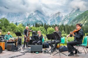 Il loro è un sodalizio ben rodato, frutto di stima, passione e musica condivisa. Non è un caso dunque se oggi gli unici suoni, oltre a quelli della natura del Tarvisiano, siano stati proprio quelli delle percussioni e degli archi di questi artisti meravigliosi. Silenzio rispettoso e musica, per un’ora e mezza, hanno reso le montagne ancora più suggestive.