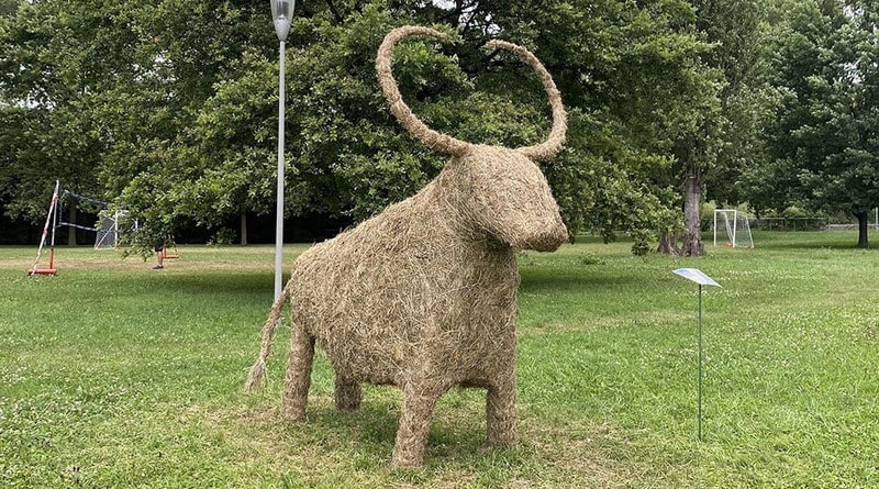 Il “Toro di Buja” realizzato con il fieno nel parco urbano di via S.Stefano