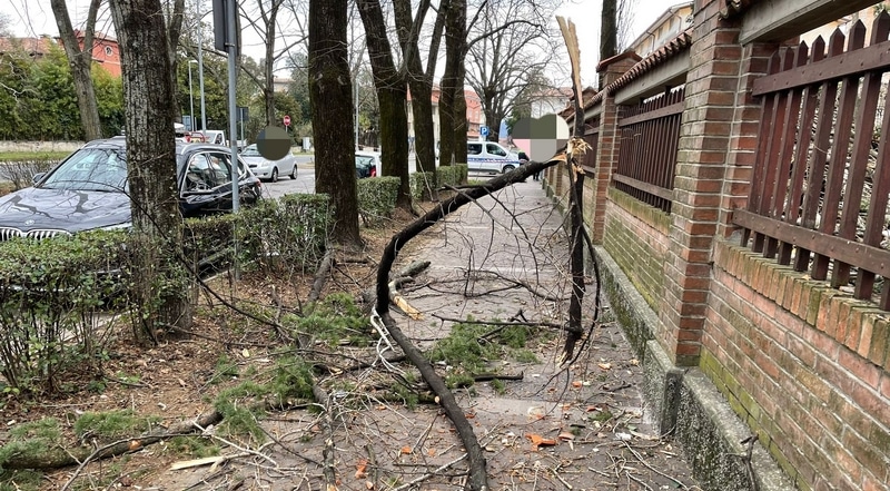 Il vento fa cadere un grosso ramo su un’auto posteggiata a Cividale