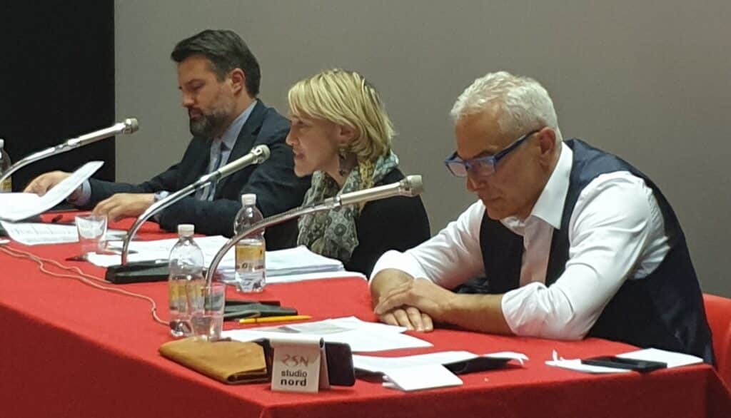 Teatro Candoni gremito in occasione del confronto moderato da Paolo Mosanghini, vicedirettore del Messaggero Veneto, tra i tre candidati sindaco di Tolmezzo alle prossime elezioni comunali, il tutto in diretta su Radio Studio Nord e in video sulla pagina Facebook di Studio Nord News, in entrambi i casi con grandi numeri.