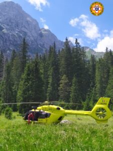 I soccorritori gli hanno prestato le prima cure, ma era evidente la gravità della situazione per cui è stato nuovamente richiesto l’elicottero che, giunto sul posto, ha potuto atterrare su una zona pianeggiante e caricare il ferito a bordo.