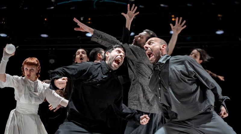 In linea con lo stile di Balletto Civile, la danza viene utilizzata come linguaggio narrativo per costruire il senso della messa in scena. Attraverso i corpi dei performer, la partitura scenica evoca immagini arcaiche, richiamando l’estetica dei vasi greci, per restituire la componente tragica del testo originale.