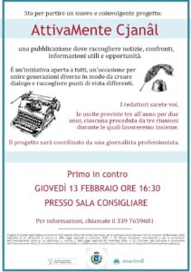 “AttivaMente Cjanâl” è un progetto finanziato dalla Regione FVG che si propone di favorire le relazioni intergenerazionali all’interno della comunità attraverso la raccolta di racconti, storie, fatti, tradizioni, usi e costumi, eventi, scambi di esperienze e vissuti che andranno a comporre un giornalino che verrà distribuito in tutte le case del comune.
