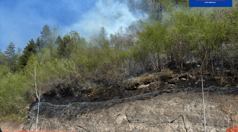 Le immagini mostrano una colonna di fumo che si alza dal versante a ridosso della viabilità della SR 355, in un’area di margine tra abitato e bosco, confermando la delicatezza dell’intervento in una zona di interfaccia tra presenza umana e vegetazione.