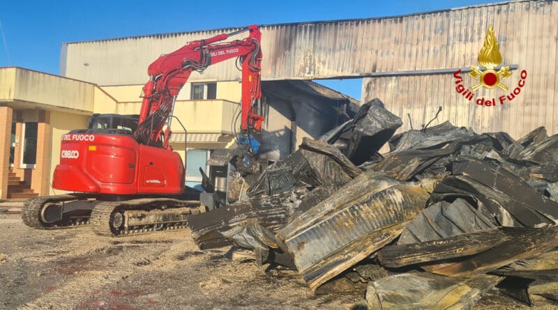 Proseguono le operazioni di bonifica si alcuni piccoli focolai ancora attivi all’interno del capannone. Per consentire tali operazioni questa mattina i Vigili del fuoco hanno operato con due escavatori del Nucleo Operativo Speciale del comando di Udine per rimuovere le lamiere pericolanti del tetto collassato. Ancora in fase di accertamento le cause dell’incendio.