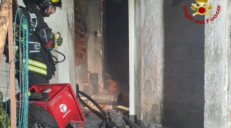 Giunti sul posto i VV.F hanno riscontrato che dal primo piano di una casa in linea di due piani fuori terra usciva una colonna di fumo. I soccorritori sono entrati nell’alloggio, che risultava disabitato, e hanno iniziato ad estinguere l’incendio che, innescatosi in una stanza al primo piano, si era propagato anche al soprastante solaio in legno.