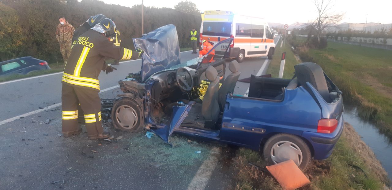 Sono rimaste coinvolte due autovetture, una Audi A3 il cui conducente ha riportato solo lievi ferite, e una Peugeot 106 con a bordo due uomini e una donna, che sono rimasti incastrati all’interno dell’abitacolo. La donna purtroppo è deceduta nell’impatto.