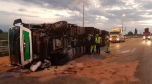 Il mezzo, per cercare di evitare l’auto, si è rovesciato coinvolgendo anche un altro veicolo.