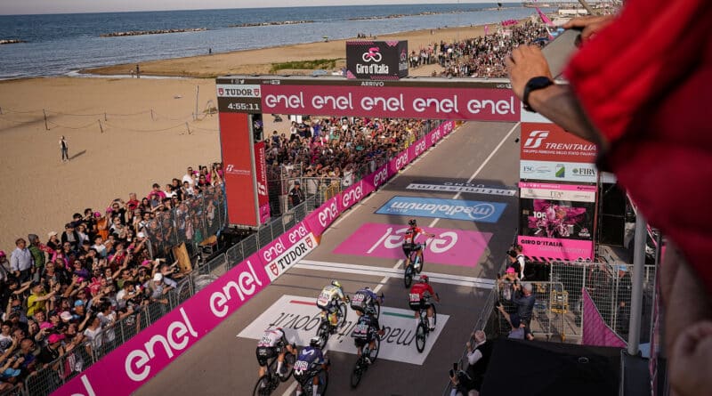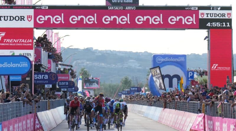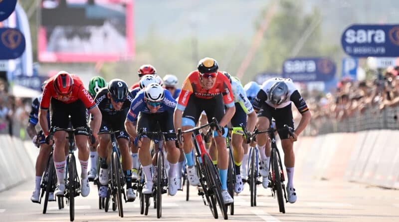 Fantastica volata di Jonathan Milan, che vince la seconda tappa del Giro d’Italia di ciclismo, la Teramo-San Salvo di 202 km