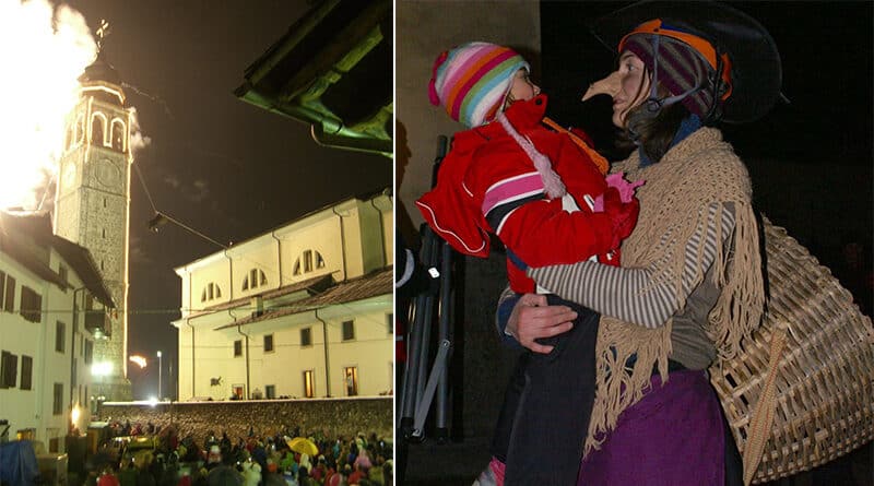 La Befana scende per la 25a volta dal campanile di Forni di Sopra