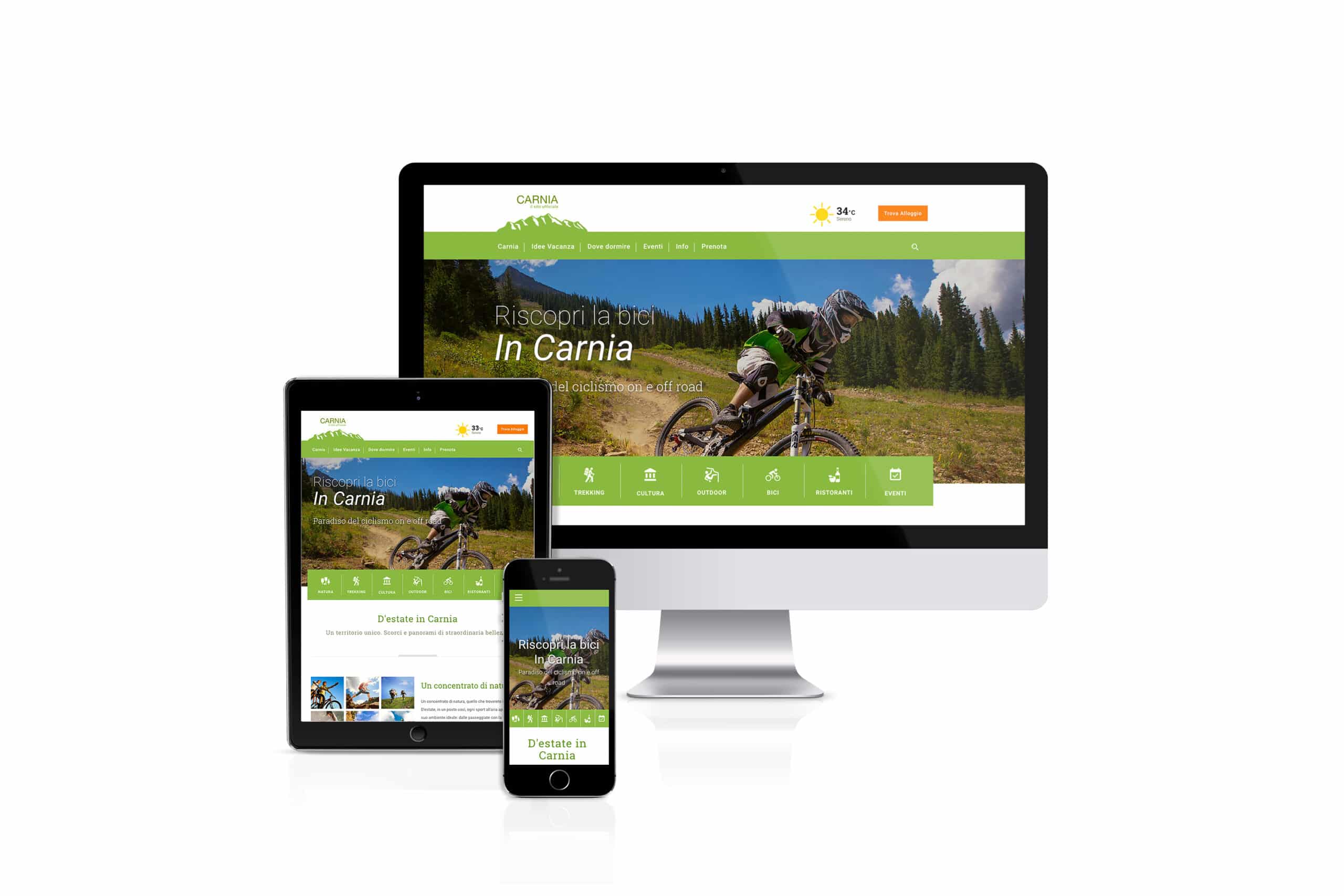 In linea con le strategie di Promoturismo FVG, la nuova versione del sito web carnia.it nasce nell’ambito del progetto Zoncolan Bed and Bike – capofila il Comune di Comeglians – finanziato dalla Regione FVG con i fondi della L. 266/1997 al fine di valorizzare il sistema distributivo e turistico dei territori interessati. Da qui, dunque, l’idea di rilanciare il sito turistico della Carnia con il rinnovo completo del layout e un arricchimento dell’offerta di contenuti e informazioni, declinate in esperienze di vacanza che spaziano dallo sport, alla cultura, dalle tradizioni all’arte, nell’intento di offrire una panoramica ricca e suggestiva delle opportunità turistiche che offre la Carnia.