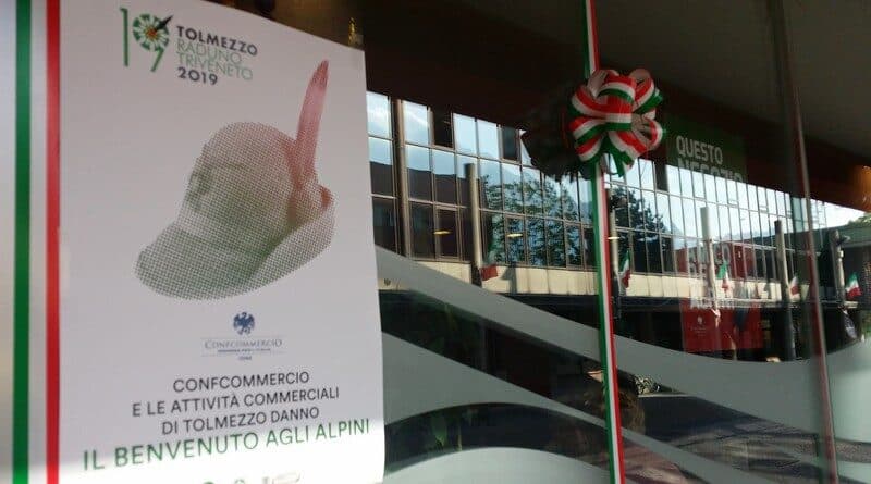 Le vie e le piazze di Tolmezzo, e dei vari comuni della Carnia, sono tappezzate di bandiere e lo sono anche le case di privati che vogliono, ognuno a modo suo, fare sentire la propria partecipazione a questo importante evento delle penne nere.