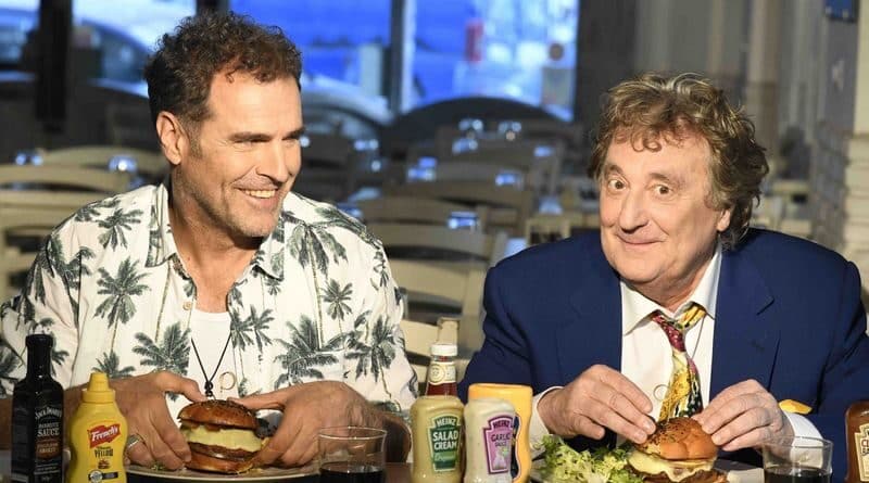 Enzo Iacchetti e Pino Quartullo arrivano in Friuli per quattro date di Hollywood Burger, il nuovo spettacolo prodotto dalla Contrada di Trieste. La commedia, scritta da Roberto Cavosi e interpretata anche da Fausto Caroli, farà tappa venerdì 14 febbraio alle 20.45 al Teatro Lavaroni di Artegna, sabato 15 febbraio alle 21 al Teatro Italia di Pontebba e domenica 16 febbraio alle 20.45 all’Auditorium Comunale di Zoppola. L’ultima replica nel Circuito ERT è in programma giovedì 23 aprile al Teatro Clabassi di Sedegliano.