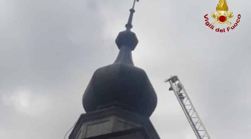La croce posta sulla sommità del campanile della chiesa di Santa Maria Assunta facente parte della Parrocchia di San Giorgio si era infatti pericolosamente piegata su un lato rappresentando quindi un potenziale pericolo di caduta a terra.