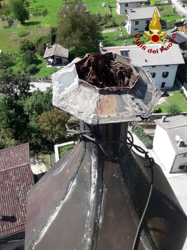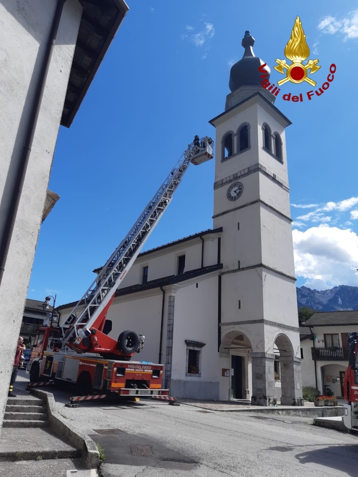 La Croce del Campanile si piega, vigili del Fuoco in azione in Val Resia