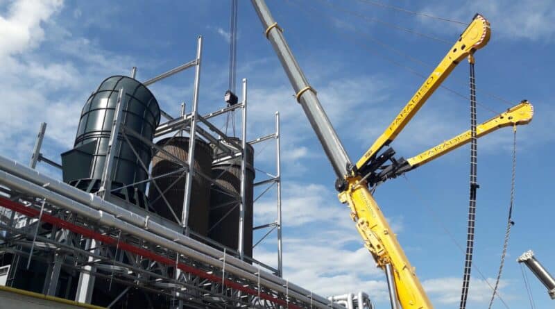 La gru telescopica più grande del mondo nei cantieri della Fantoni di Rivoli di Osoppo. Spettacolare la posa, in questi giorni di agosto, di due giganteschi elementi, di 120 tonnellate, alti 30 metri, che faranno parte di una maxi caldaia. Prodotti dalla Pelfa di Osoppo, sono stati trasportati sul luogo della posa dalla Autotir di Tarcento e le operazioni di posa sono state eseguite dalla Carpin Autogru di Scorzè con l’ausilio della ditta Paradiso di Canosa di Puglia, con la gru Liebherr Ltm da 1200 tonnellate, la gru telescopica più grande del mondo (nelle foto).