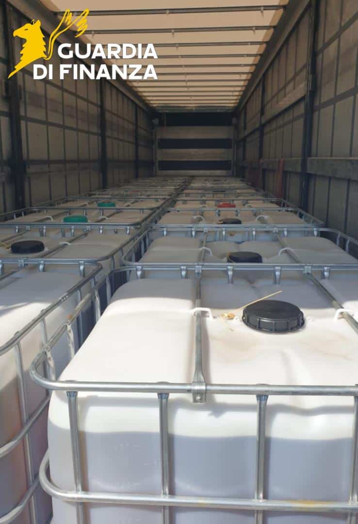 La circostanza ha indotto i finanzieri ad un più approfondito controllo documentale anche attraverso interrogazioni alle banche dati in uso al Corpo nonché all’analisi speditiva del prodotto, chiarendo che quel liquido – classificabile come olio idraulico – era privo della documentazione per il trasporto.