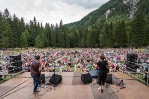 È stata una vera e propria festa della musica e della natura: a piedi, in bicicletta, con i bus navetta messi a disposizione dall’organizzazione, con i cani, con i bambini, il pubblico compostamente è salito ai Laghi di Fusine sin dalle prime ore del mattino aspettando l’arrivo della Cantantessa.