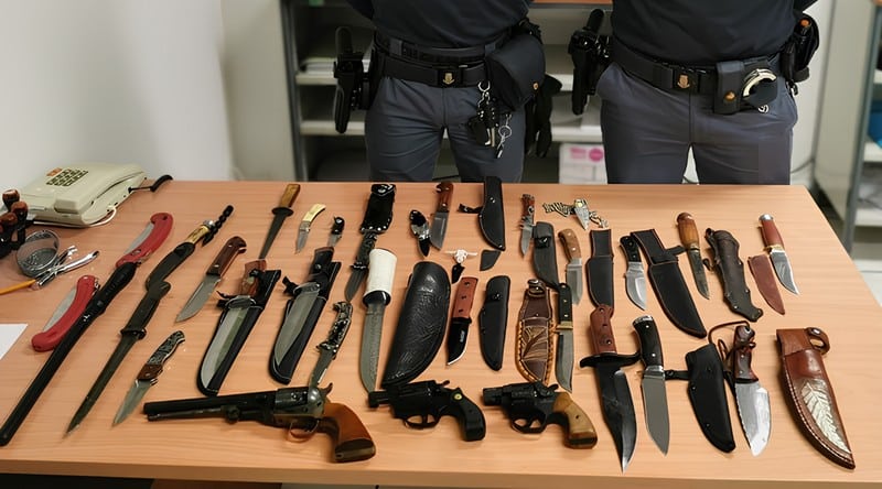 La Polizia di Frontiera di Tarvisio sequestra 22 coltelli, 2 pistole a un revolver