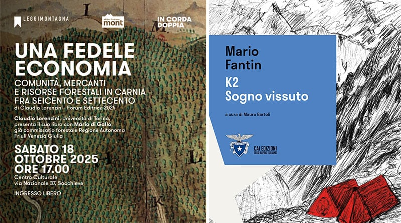 Il secondo appuntamento, venerdì 24 ottobre alle 20.45 a Tolmezzo nella sede della Sezione Cai, sarà dedicato al gigante K2, la seconda montagna più alta al mondo dopo l’Everest. “K2 – Sogno vissuto” (Cai Edizioni), pubblicato a cura di Mauro Bartoli, è il diario di Mario Fantin, cine-operatore e alpinista, che venne ammesso a far parte della storica spedizione del Cai guidata da Ardito Desio giunta sulla cima inviolata del K2 il 31 luglio 1954, alla quale partecipò anche l’alpinista carnico Cirillo Floreanini.Attraverso le parole e le immagini ritrovate nel suo archivio, Fantin restituisce il racconto autentico di un’impresa epocale che segnò l’Italia del dopoguerra. La sua testimonianza diretta svela l’emozione di vivere un sogno tra fatica, scoperta e contemplazione della natura più estrema. Mauro Bartoli, autore, regista e produttore cinematografico, oltre al libro presenterà il podcast da lui curato “Italia K2. Racconto di una spedizione straordinaria”, disponibile su RaiPlaySound, assieme a Paola Cosolo Marangon, consulente pedagogica, scrittrice, insegnante yoga, alpinista.
