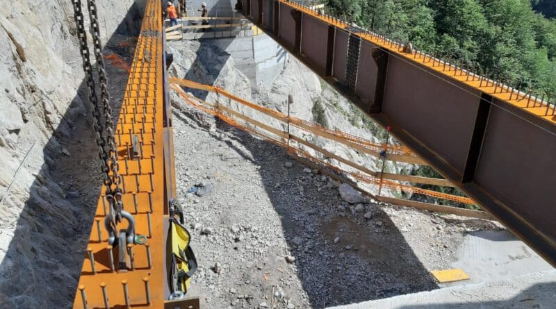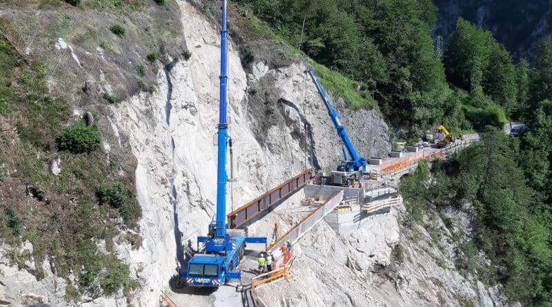 In questi giorni si stanno concludendo le operazioni di varo delle travi in acciaio che consentiranno poi la posa dell’impalcato e la successiva integrazione e sistemazione dello stesso in modo da poter riaprire la strada.