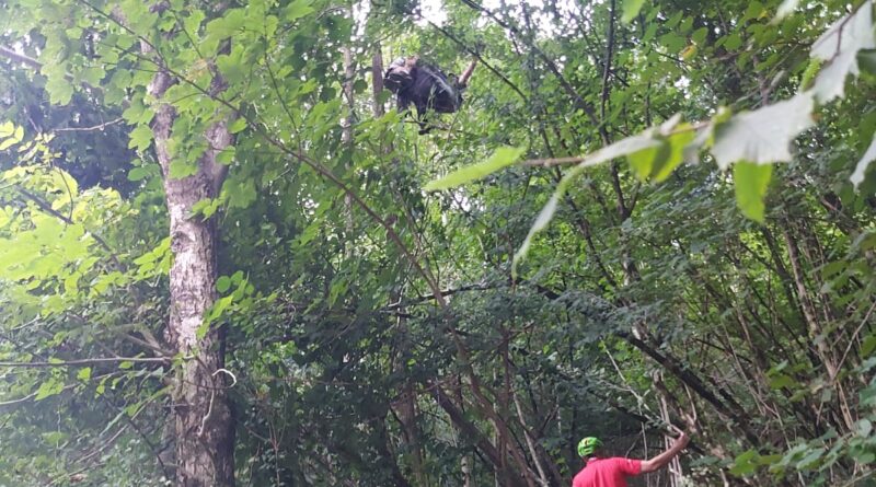 La vela del parapendio si impiglia sull’albero, portato in salvo