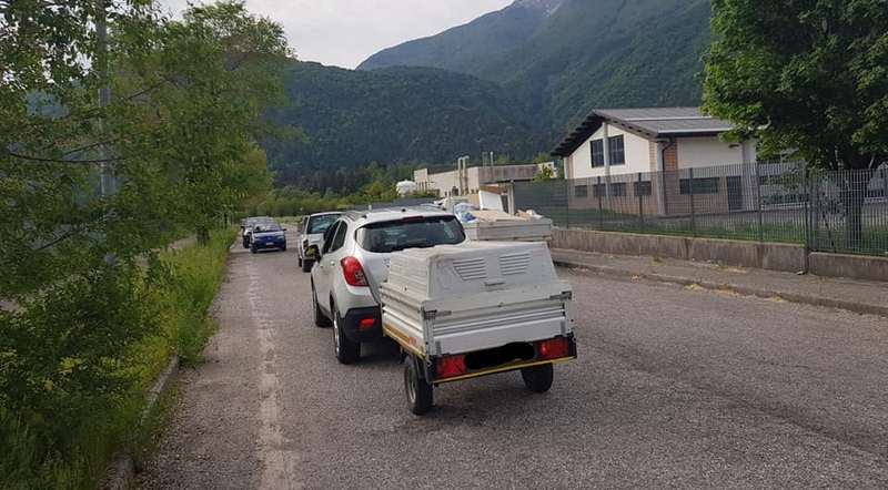 (nella foto di copertina le auto in attesa della riapertura, non avvenuta, del centro di raccolta di Villa Santina)