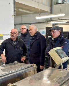 La visita ha riguardato in particolare la Complast, azienda che occupa 70 addetti e che da decenni rappresenta un riferimento per l’occupazione nella valle. L’azienda sta valutando un ampliamento e ha da poco portato a termine un investimento in un’ottica di sostenibilità energetica, con la realizzazione di un impianto fotovoltaico da 310 kW/h, grazie anche al sostegno regionale. Alla Friulcolor, che impiega 12 addetti, vengono invece svolte lavorazioni di verniciatura e finitura di pregio per montature di occhiali destinate a grandi brand della moda. L’altissima specializzazione della manodopera, la lavorazione manuale e la flessibilità produttiva rendono entrambe le azienda particolarmente ricercate nel settore dell’occhialeria di alta gamma.