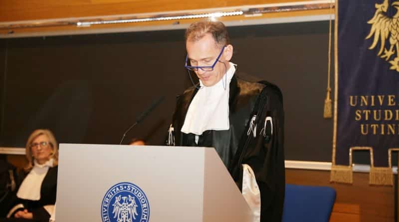Prima della lectio, a dare inizio all’evento – di grande significato per l’Università di Udine e la sua comunità accademica – sono stati gli indirizzi di saluto del rettore Alberto De Toni e di Andrea Zannini, direttore del Dipartimento di Studi umanistici e del patrimonio culturale.