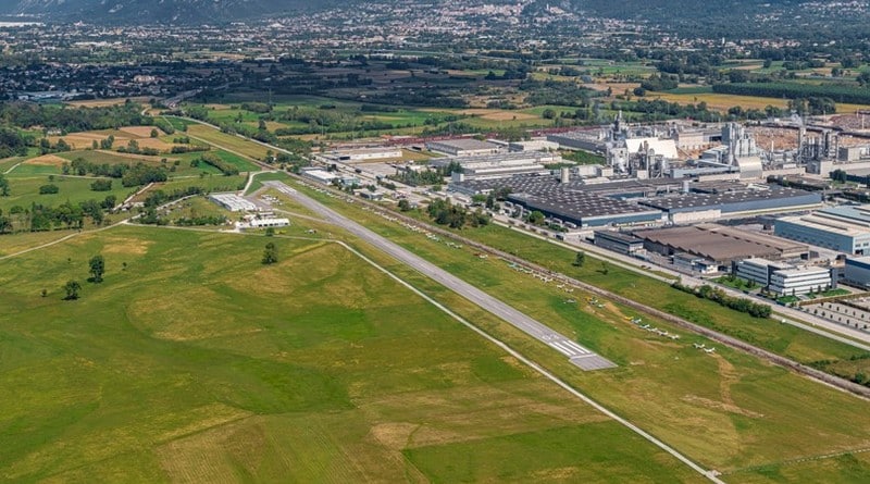Una veduta aerea dell’aviosuperficie di Rivoli di Osoppo
