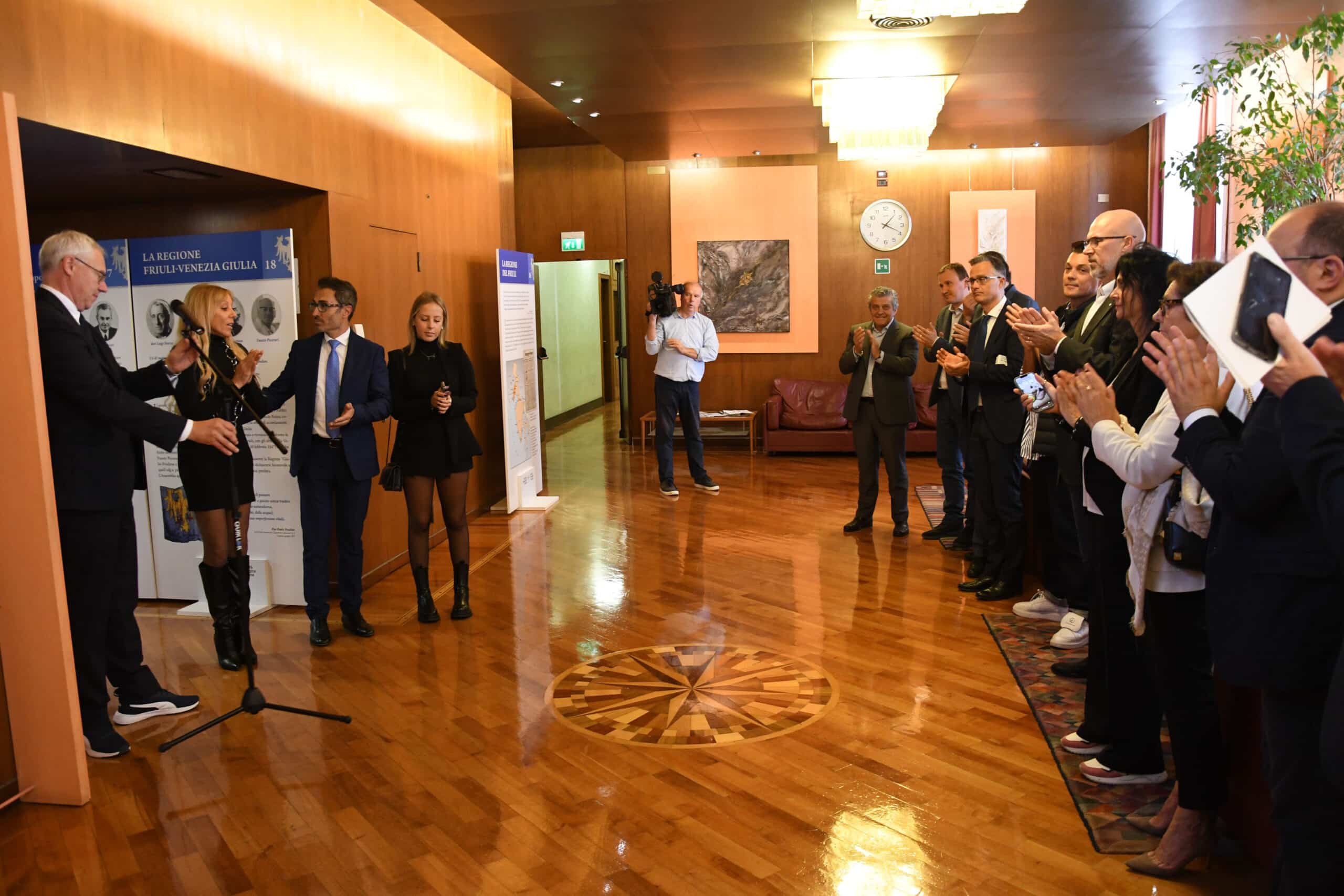 “Si vede che nelle tele di Barbara Adami ci sono scuola e preparazione”, ha rimarcato il presidente Bordin, che ha omaggiato l’artista del sigillo del Consiglio regionale “quale ringraziamento per le sue opere, stima, affetto e buon proseguimento nel suo lavoro”.