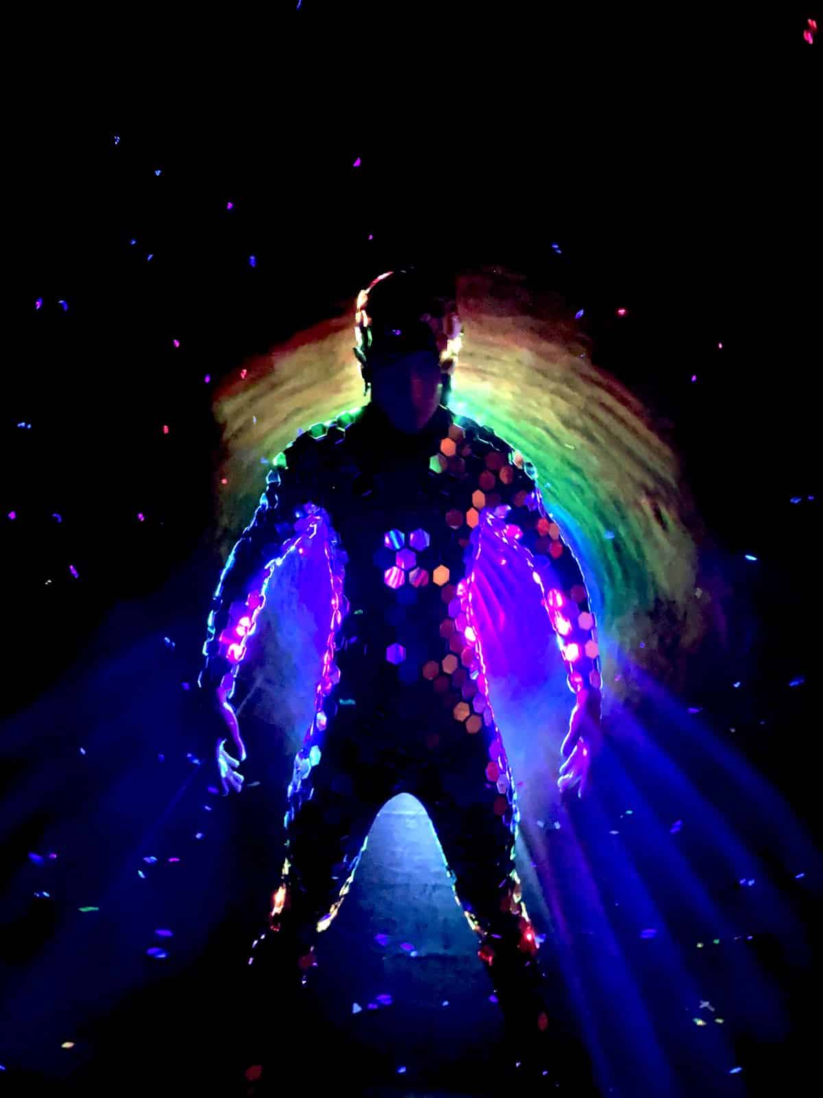 Illusioni ottiche, effetti speciali, ombre colorate, performance antigravitazionali, strutture telescopiche e l’incredibile tecnologia del light wall, uno schermo interattivo sviluppato dal direttore artistico Anthony Heinl, che grazie ai suoi studi in chimica e fisica è da sempre alla ricerca del perfetto connubio tra arte, scienza e tecnologia.