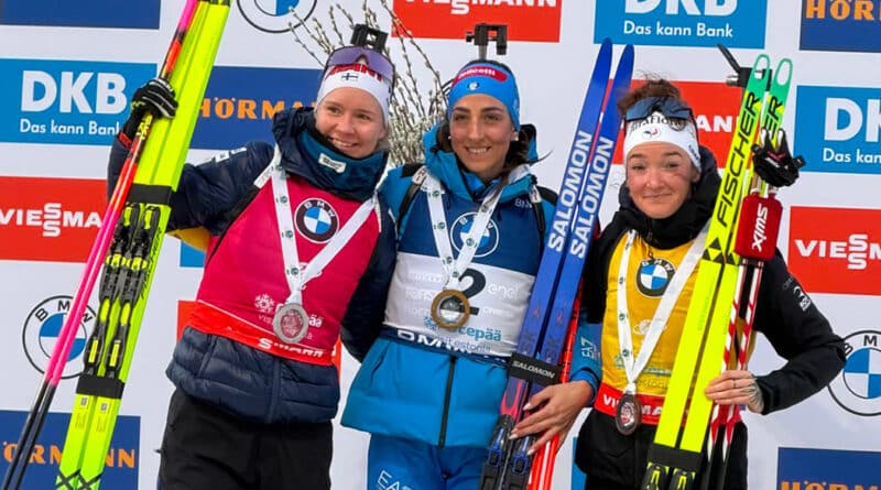 Seconda nella sprint di ieri, la sappadina ha fatto gara di testa spalla a spalla con la francese Julia Simon nella prima parte di sfida, con entrambe a commettere un errore nel poligono d’apertura. Passati al tiro in piedi, Vittozzi ha cambiato marcia in piazzola e incurante del vento ha preso progressivamente il largo, limitandosi ad un secondo errore (1-0-0-1), per tagliare il traguardo in 33’33″7 con un margine di 26″2 sulla finlandese Suvi Minkkinen (0-1-0-0) e 26″9 sulla leader di Coppa del Mondo Lou Jeanmonnot (0-0-0-1) che si contenderanno ad Holmenkollen la coppa di specialità. Ai piedi del podio, ancora Francia con Justine Braisaz Bouchet (1-1-1-0) e Oceane Michelon (0-1-1-1), seguite dal terzetto svedese formato da Gestblom, Heijdenberg e Hanna Öberg.