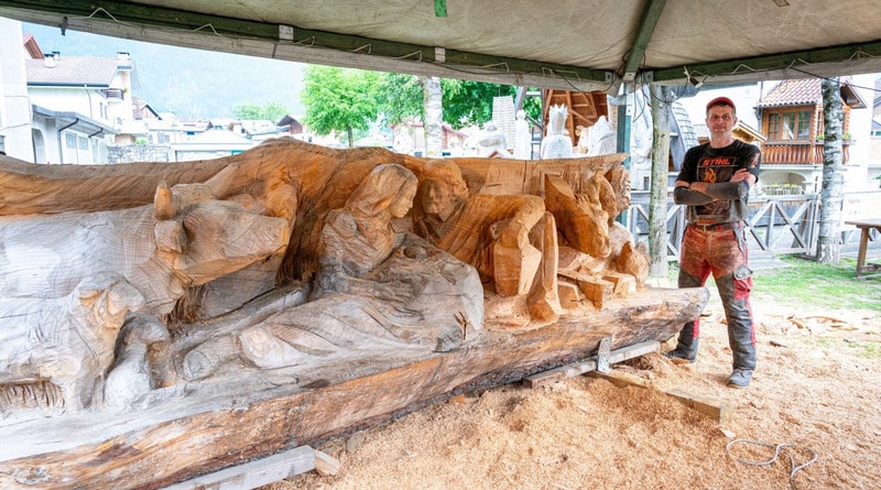 Un nuovo scultore all’opera, a Sutrio, per dare il suo contributo creativo al progetto Sutrio Paese Presepe.