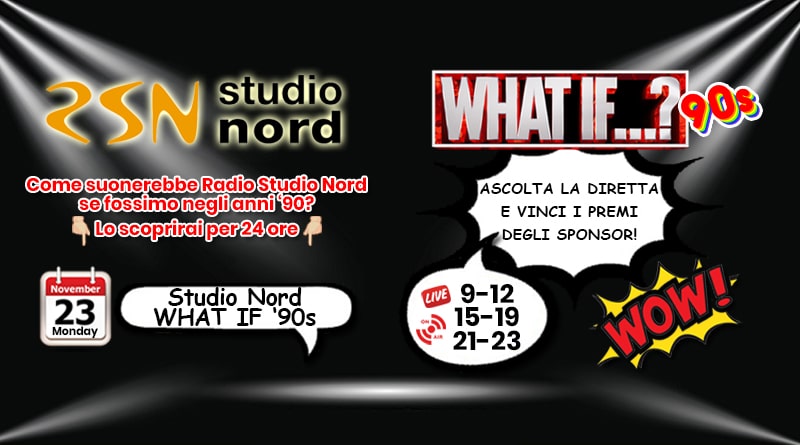 Lunedì 23 con “Studio Nord What If…?” per un giorno si ritorna agli anni ’90